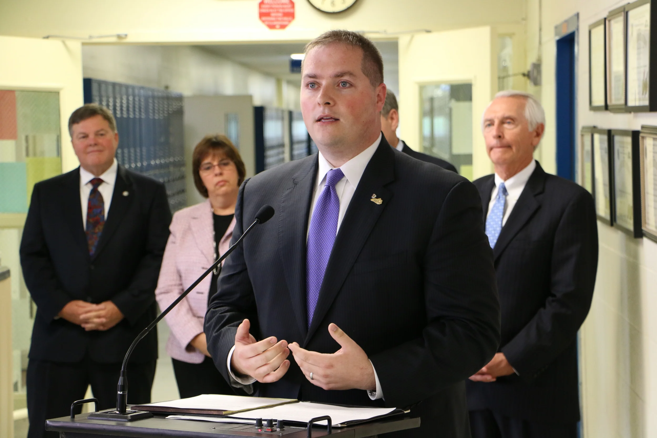 Sen. Westerfield (R, Hopkinsville) speaks at the ceremonial SB200 bill signing at the Christian County Day Treatment center in Hopkinsville (formerly CCMS) on August 28, 2014.